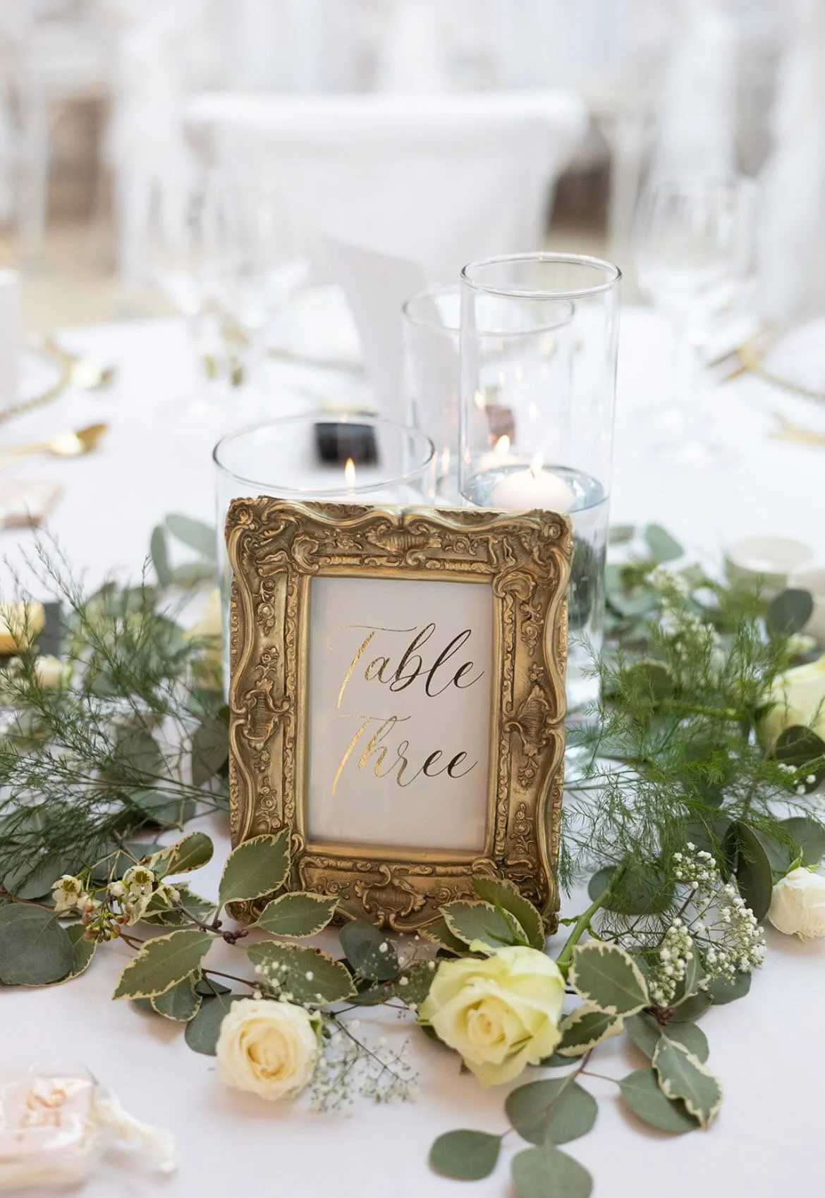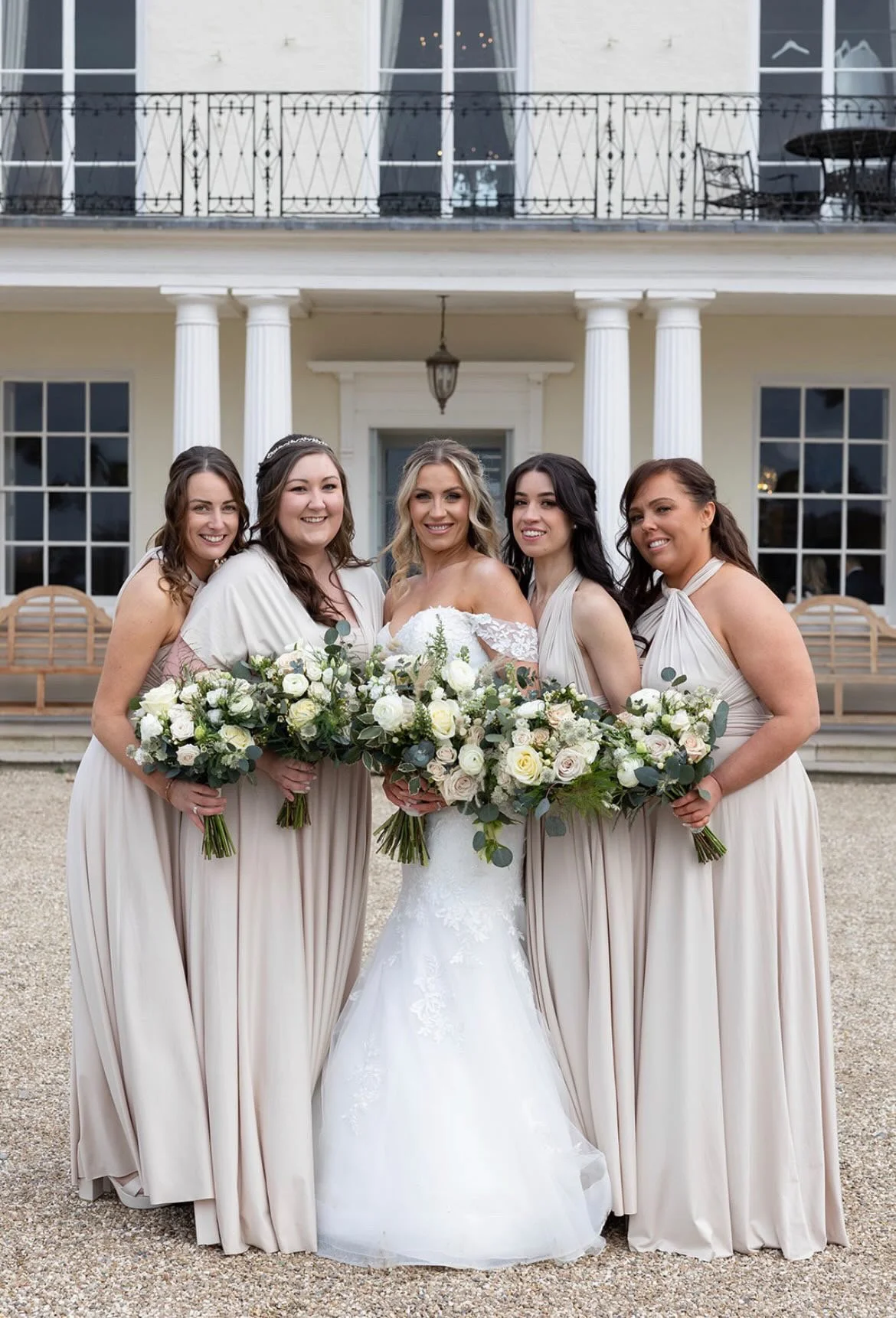 We thought we wanted a completely DIY, rustic barn wedding. However after visiting some barns which just didn’t do it for us at all, we decided to visit a manor/stately home venue just to see if maybe it might be a bit of us. Well we drove through the gates of Rockbeare Manor and just looked at each other with huge grins… we both fell completely in love with the look and feel of everything about the place and the staff and 2 hours later we left with a wedding date and a venue. The theme for our winter wedding was white and gold as we wanted it to feel wintery without feeling Christmassy. I went back and forth on an accent colours and I just love neutrals so I chose nude / taupe. I love the French elegant feel of gilt gold frames and gold leaf italic stationery. I honestly worried the whole planning process if it would all actually come together ok, but both Sam and I couldn’t have been more overjoyed with the final look.